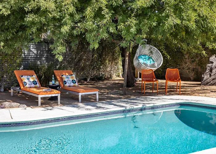 De Palm Springs est accessible en moins de 15 minutes en voiture et les attractions naturelles comme le Murray Canyon Trail sont à environ 30 minutes à pied. Cette villa The Pond Estate By Avantstay Maximalist Designer Compound W 2 Casitas Indoor Outdoor Pools Tennis Court Gorgeous Mountain Views 12K Sqft est située à 4 km de sites de divertissement tels que Mesquite Country Club. Le Parc aquatique Wet'n'Wild Palm Springs est accessible à 15 minutes en voiture de cette villa de 11 chambres.
